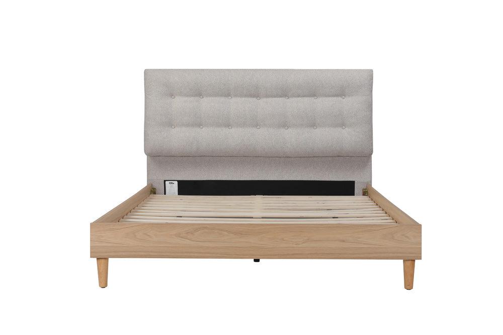 Crafted from timber solids, MDF, and plywood, this bed frame features a sturdy centre rail and 12mm flat slats, each supporting up to 240kg. Solid timber legs and an upholstered headboard add style, while dual USB/USB-C ports offer everyday convenience. Responsibly sourced and backed by a 2-year warranty, it’s built for comfort, strength, and modern living.