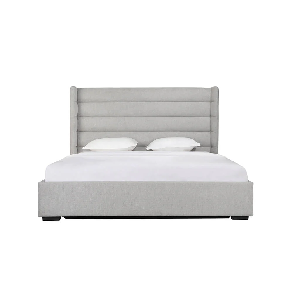 Sleep easy with the Mosman Gas Lift Upholstered King bed frame. Crafted with timber solids and designer water repellant fabric, it has 3 substantial metal centre rails and a 90kg flat weight gas lift capacity for excellent support and durability. Available in 2 sizes (Queen and King), its flat slats and weight rating of up to 300kg will ensure you snooze in comfort and peace of mind. Sweet dreams!